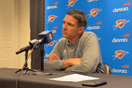 虎扑10月26日讯 NBA常规赛,雷霆117比100击败老鹰。赛后,雷霆主帅马克-戴格诺特接受了采访,谈到了切特-霍姆格伦带伤出战的勇气。戴格诺特表示:“他一直都有这种勇气,总是随时准备上场,他是个出